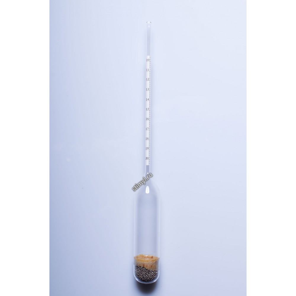 Он представляет собой стеклянный поплавок, шкала которого проградуирована в единицах плотности. Отсчет производят по точке шкалы, находящейся на уровне поверхности жидкости.