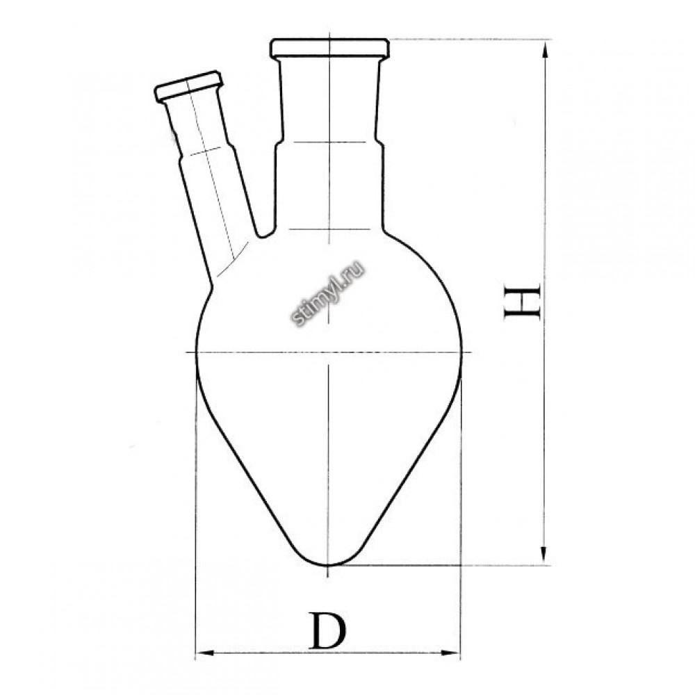 Колба ОГ-2 остродонная с 2-мя горловинами с шлифами применяется для проведения химических анализов.