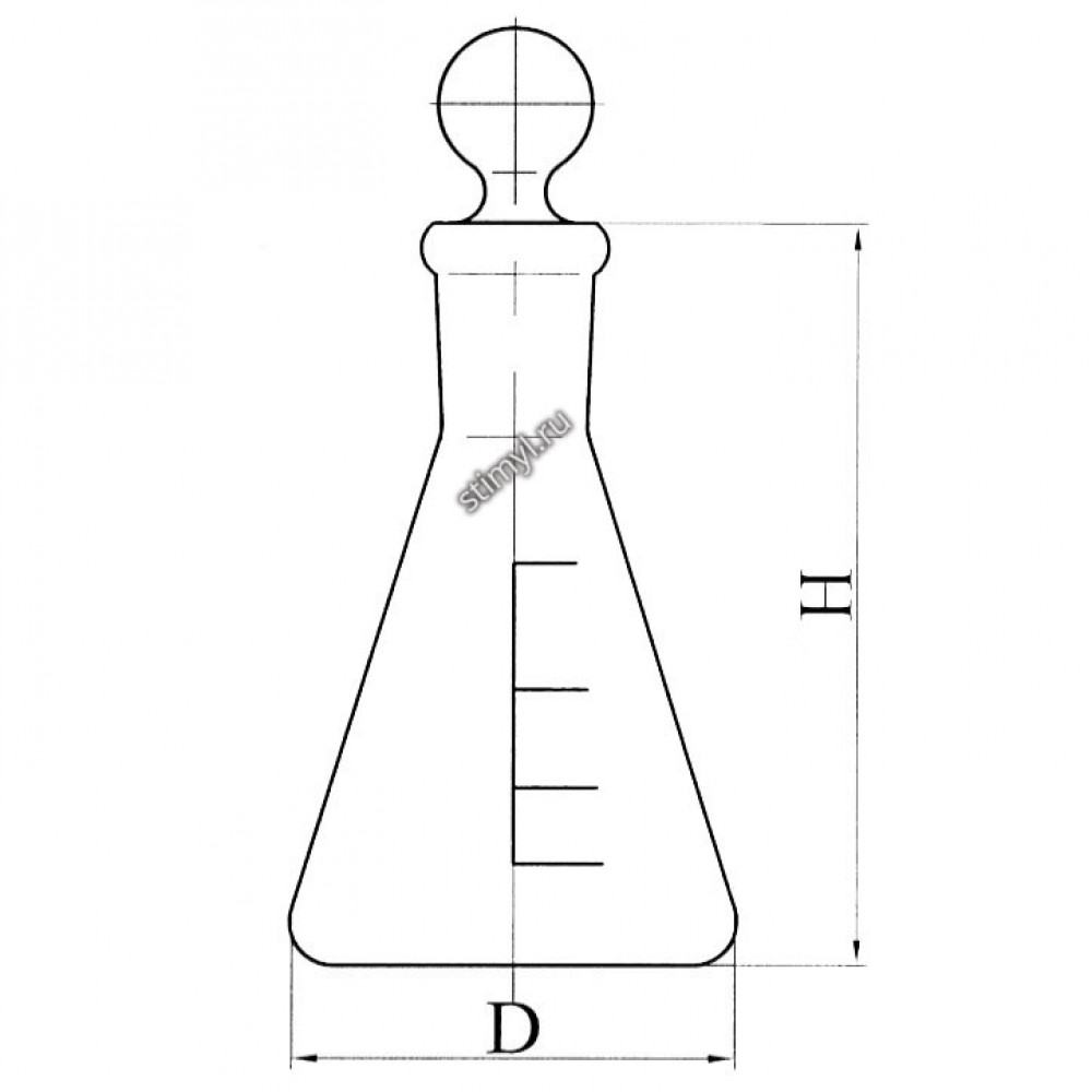 | Шифр | Номин. вместим.,мл | Шлиф КШ ГОСТ 8682-93 | D мм | H мм |