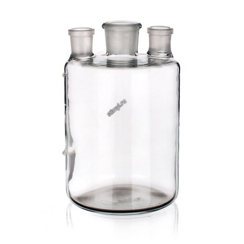 Склянка с тубусом (Бутыль Вульфа с 3-мя горловинами) предназначена для отбора и хранения раствора и газа. Может использоваться как предохранительный сосуд перед водоструйным насосом.
