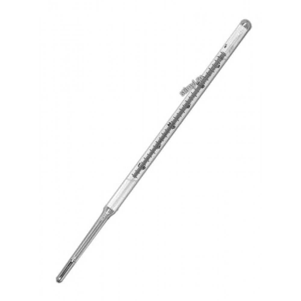 | Марка | Диапазон измерения температуры, ºC | Цена деления шкалы, ºC | Длина термометра, мм | Термом. жидкость |