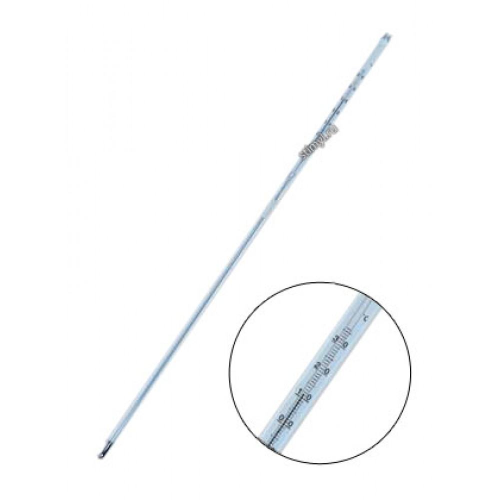 Термометр ТИН-6 для определения температуры хрупкости. Изготавливается по ГОСТ 400-80. Термометр ТИН-6 — термометр стеклянный ртутный с вложенной шкальной пластиной из стекла молочного цвета. Термометр неполного погружения.Глубина погружения термометра 255 мм равна нижней части термометра, отмечена меткой на капиллярной трубке.Термометр предназначен для измерения температуры хрупкости нефтепродуктов.Внесен в Государственный реестр средств измерений и имеет «Сертификат об утверждении типа средств измерений».КонструкцияТермометр с вложенной шкальной пластиной из молочного стекла.
